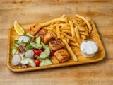 Skewered salmon cubed roasted and served with your choice of 2 sides, and dipping sauce.